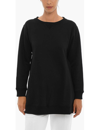 Fleeced Cotton Crew-Neck Sweatshirt With Side Slits