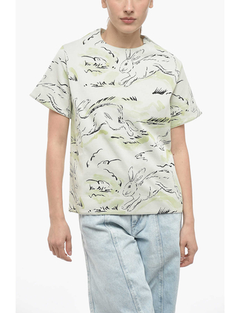 Jacquard Jersey Rabbit T-Shirt With Shoulder Zip