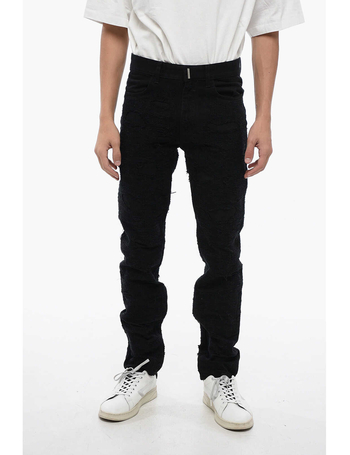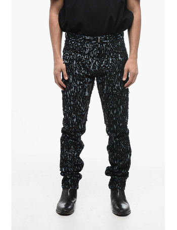 Skinny Fit Denim And Fabric Denims With Zipped Details 16cm