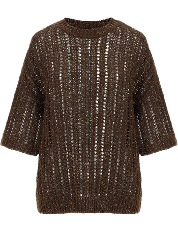 Openwork Knit Pattern Sweater With Sequins