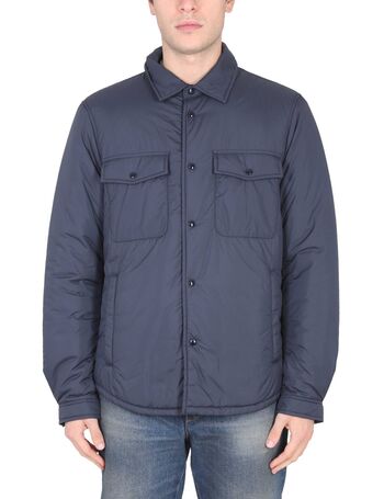 Two-Tone Tartan Motif Overshirt With Zip Closure