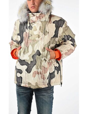 Wool Blend Military Padded Parka With Fox Fur Detail