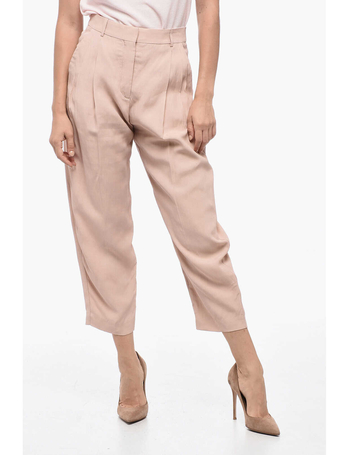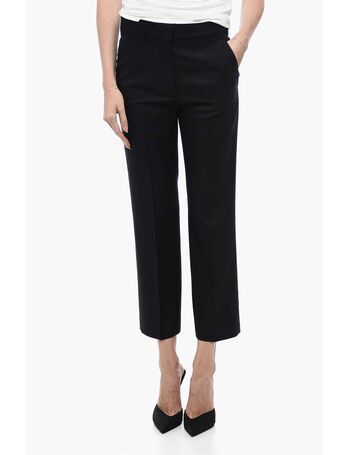 Wool Blend Cropped Fit Pants With Hidden Closure