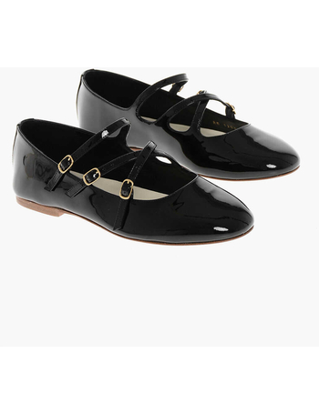 Patent Leather Ballet Flats With Criss Cross Straps