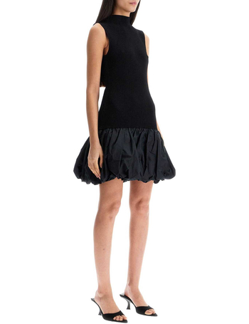 Black Knit Racer Cut Dress With High Neck And Flared Skirt