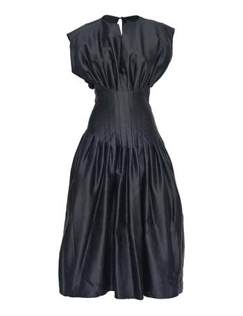 Cotton Silk Mikado Sleeveless Dress Fitted At Waist