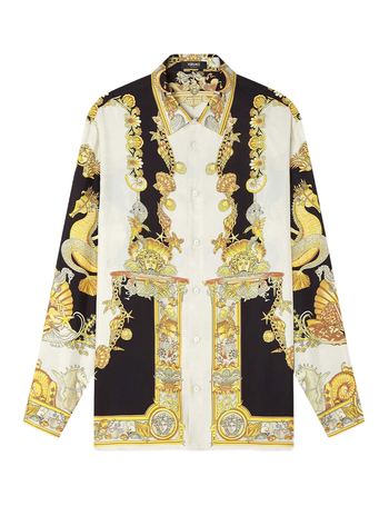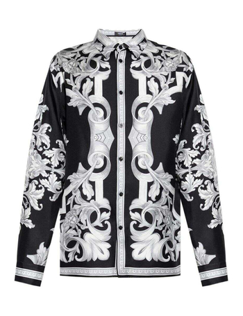 Black And White Bowling Shirt With Cuban Collar And All-Over Chain-Link Print In Silk Man