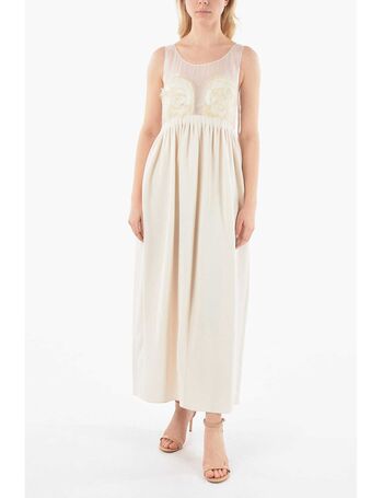 mm1 Sleeveless Silk Dress With Chiffon Embroidered Bodice An