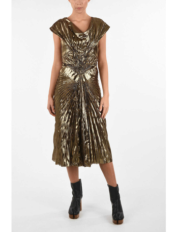 Metallic Faux Leather Draped Empire Dress