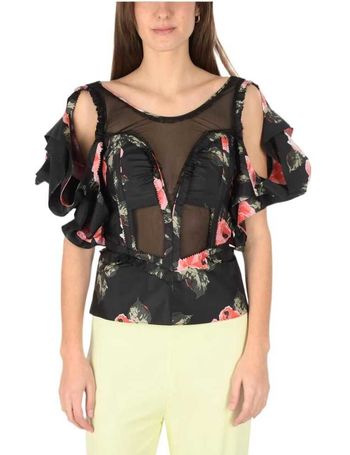 mm0 Floral-Printend Silk Maxi Dress With Cold Shoulder