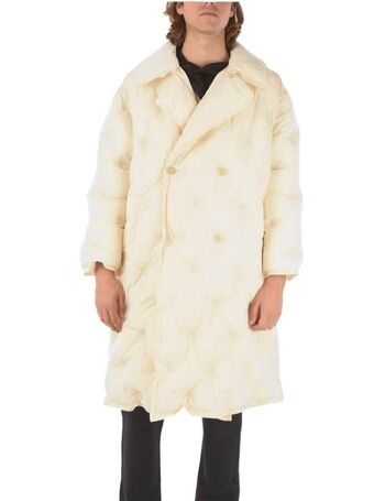 Double-Breasted Patchwork Effect Coat With Hidden Buttoning
