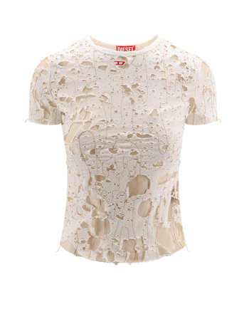 Cotton T-Shirt With Ripped Effect