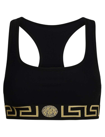 Black Swim Shorts With Elastic Drawstring Waist And Medusa Embroidery On The Front In Tech Fabric Man