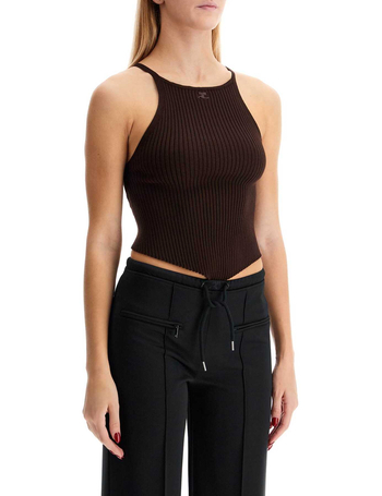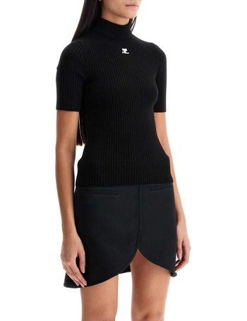 Black Midi Skirt In Viscose And Polyester With Vertical Ribs