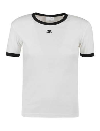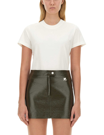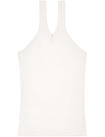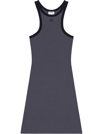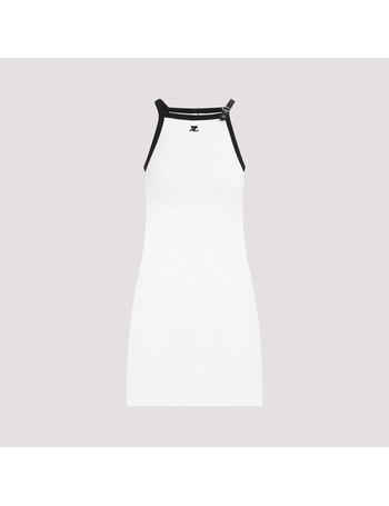 White Cotton Mini Dress With Navy Blue Details And Halter Neck
