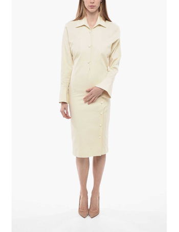 Cotton Shirt Dress With Buttoned Side Split