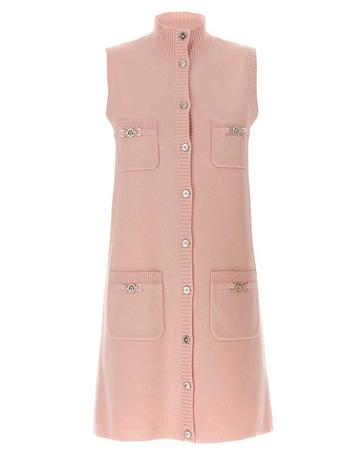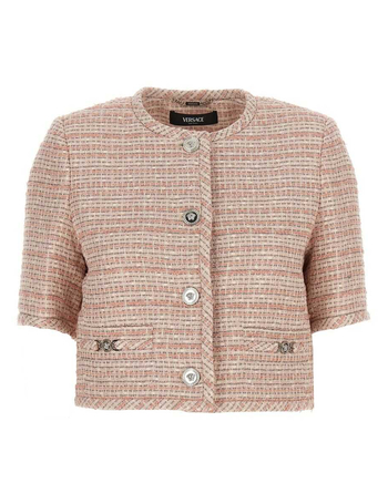 Pink Checked Tweed Jacket With Medusa Head Buttons In Wool Blend Woman