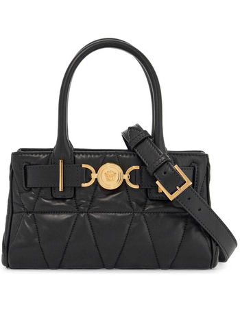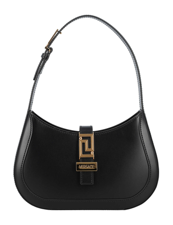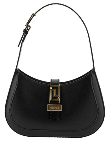 'Greca Goddess' Small Black Hobo Bag With Logo Detail In Leather Woman
