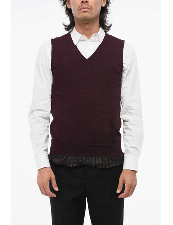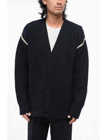 mm1 V-Neck Wool Cardigan With Denim Patches