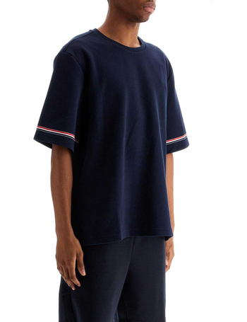 Blue Cotton Rugby T-Shirt With Red And White Stripe