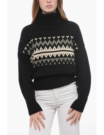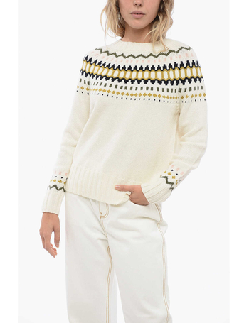Crew Neck Wool Blend Sweater With Fairisle Motif