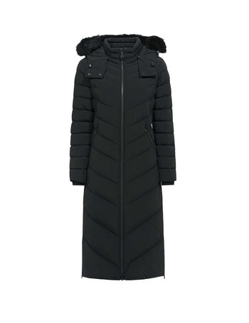 Padded Long Jacket With Removable Fur Detail