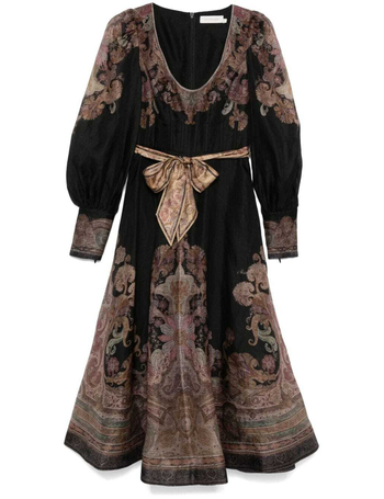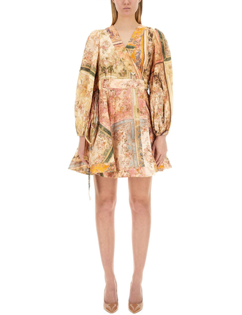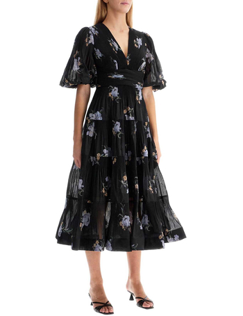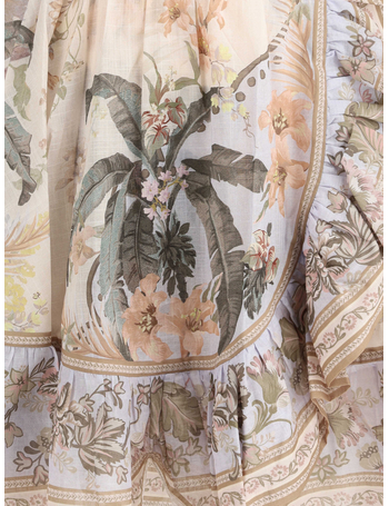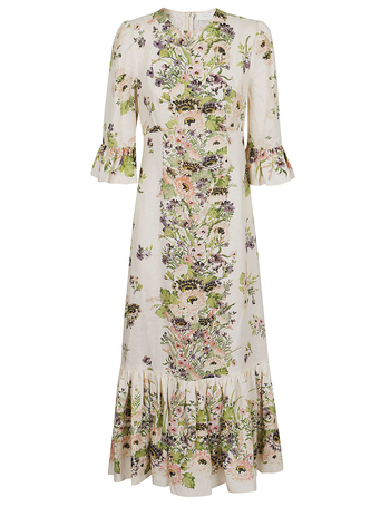Linen And Silk Dress With Floral Motif