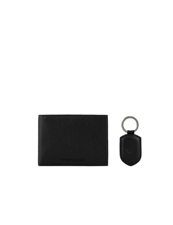 Black Leather Wallet+Keychain Set