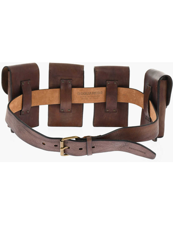 Solid Color Leather Utility Belt With Removable Pockets 40mm