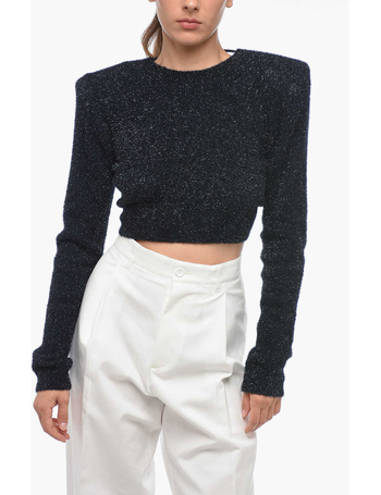 Cropped Fit Lurex Cardigan With Padded Shoulders