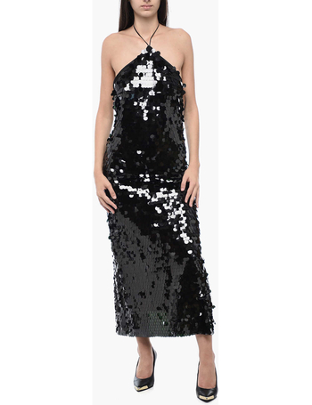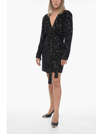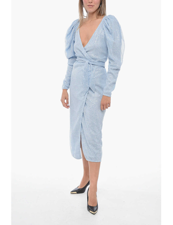 Sequined Wrap Midi Dress With Balloon Sleeves