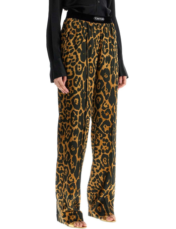 Wide Leg Leopard Print Silk Pants In Camel And Black