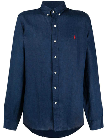 Camicia Lino Righe Blu E Bianca Manica Lunga Regular
