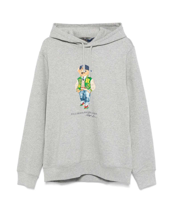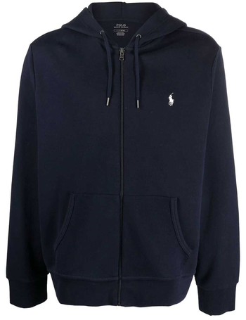 Men's Gray Cotton Zip Hoodie With Polo Logo