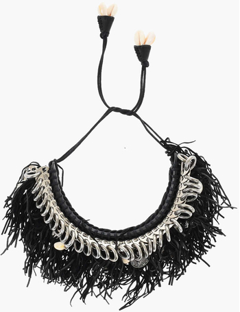 Metal African Hyena Plastron Necklace With Fringes And Charm