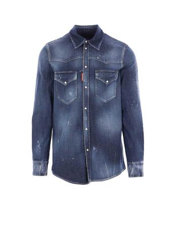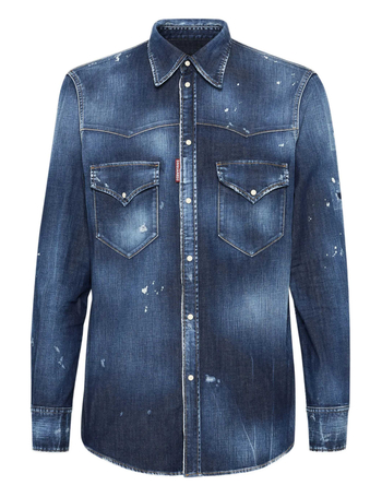 'Dan' Blue Jacket With Classic Collar And All-Over Painted Details In Denim Man