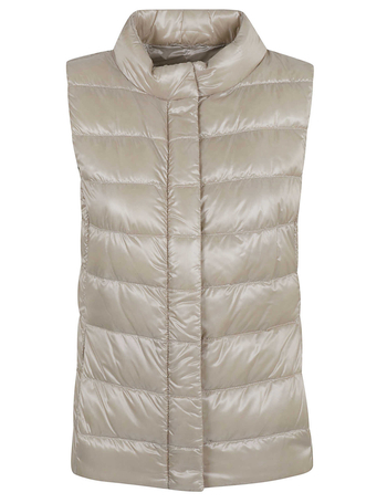 Sleeveless Down Jacket In Dove Gray Polyester With Quilted Hood
