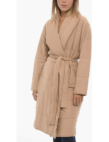 Solid Color Quilted Coat With Belt
