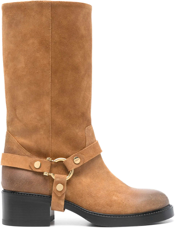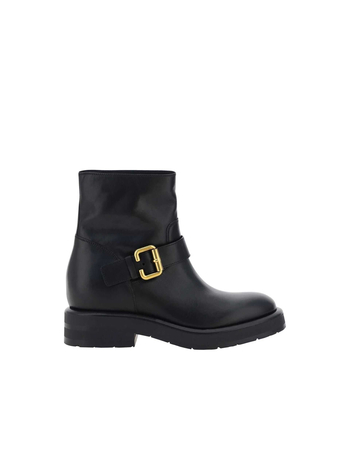 Leather Knee-High Boots With Buckle Detail And Tank Sole