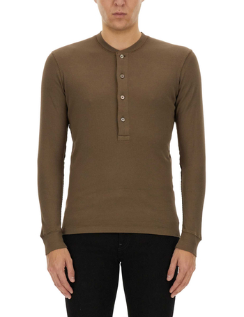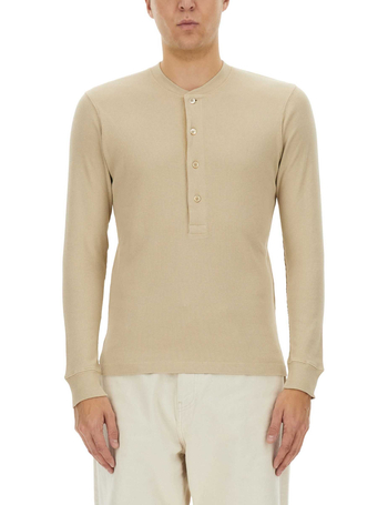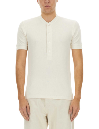 Henley T-Shirt Ivory In Cotton And Microfiber Ribbed