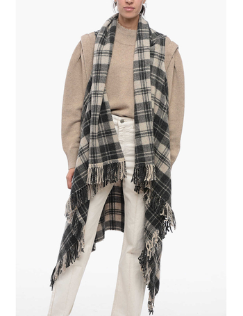 Etoile Checked Asymmetric Vest With Fringed Hem