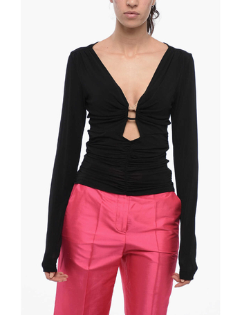 Etoile Draped Wrap Shirt With Padded Shoulders