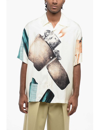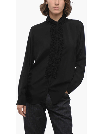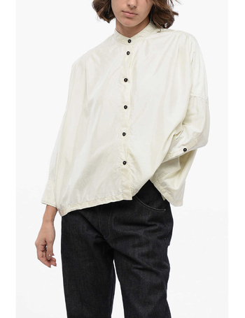 Satin Fluid Shirt With Asymmetric Mandarin Collar