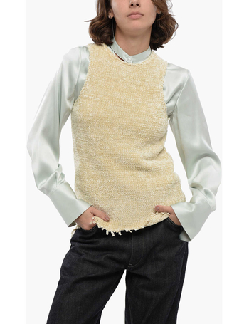 Silk Chenille Tank Top With Fringed Hem