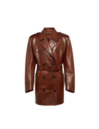 Leather Open Bangle Bracelet With Silver-Tone Buckle