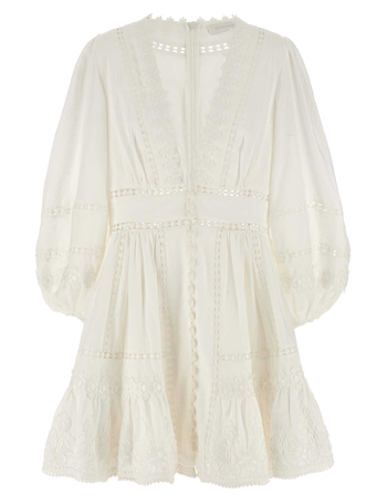 Short Dress With Cutwork Embroidery Details