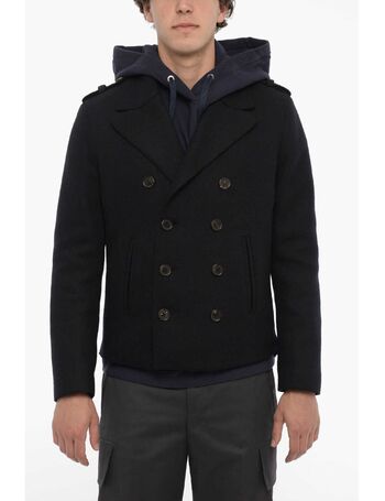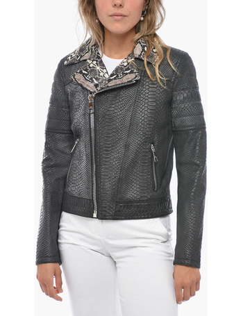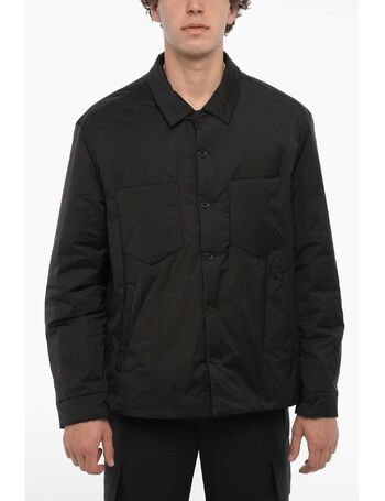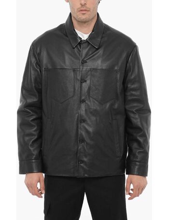 Slim Fit Leather And Fabric Overshirt With Double Breast Poc