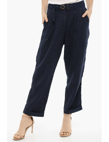 Double Pleat Cotton And Linen Pants With Belt
