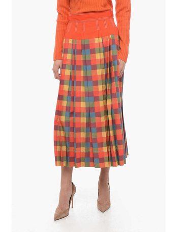 Popeline Check Motif Skirt With Plitted Detail