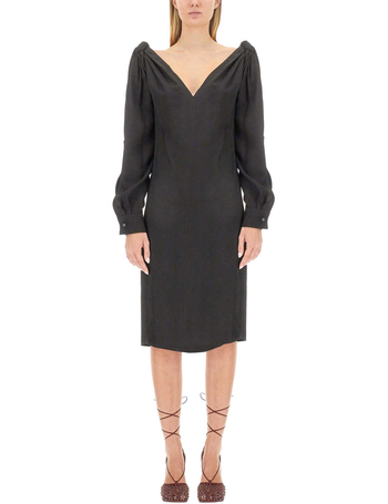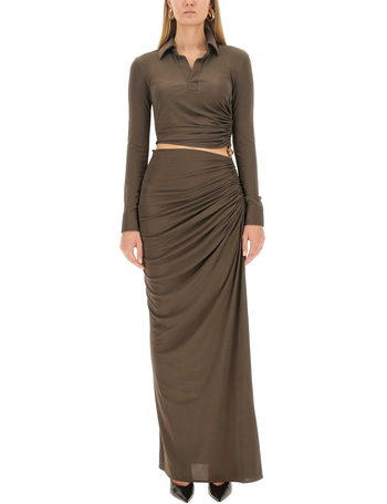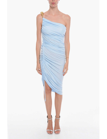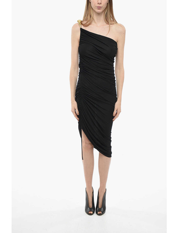 One-Shoulder Draped Dress With Gold-Tone Metal Detail